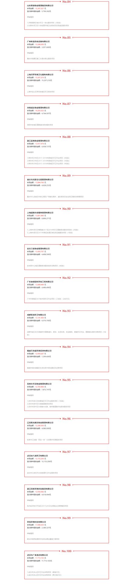全國環衛服務行業2017年6月份業績TOP100(51-100