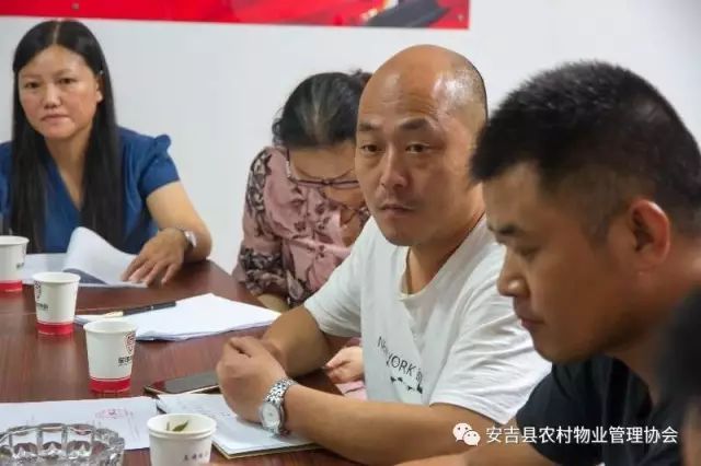2017年7月10日,安吉縣農村物業管理協會年中理事會擴大會議順利召開。本次會議邀請了縣農辦長效辦主任喻凱及今典物業、潔寶物業負責人和協會財務人員共同參與。